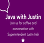 These listening sessions will provide an opportunity to ask questions, hear district updates, provide feedback, and connect with other community members and district staff. We ask that you pre-register (https://bit.ly/Javawithjustin) so that we have an accurate headcount. Light refreshments will be provided.